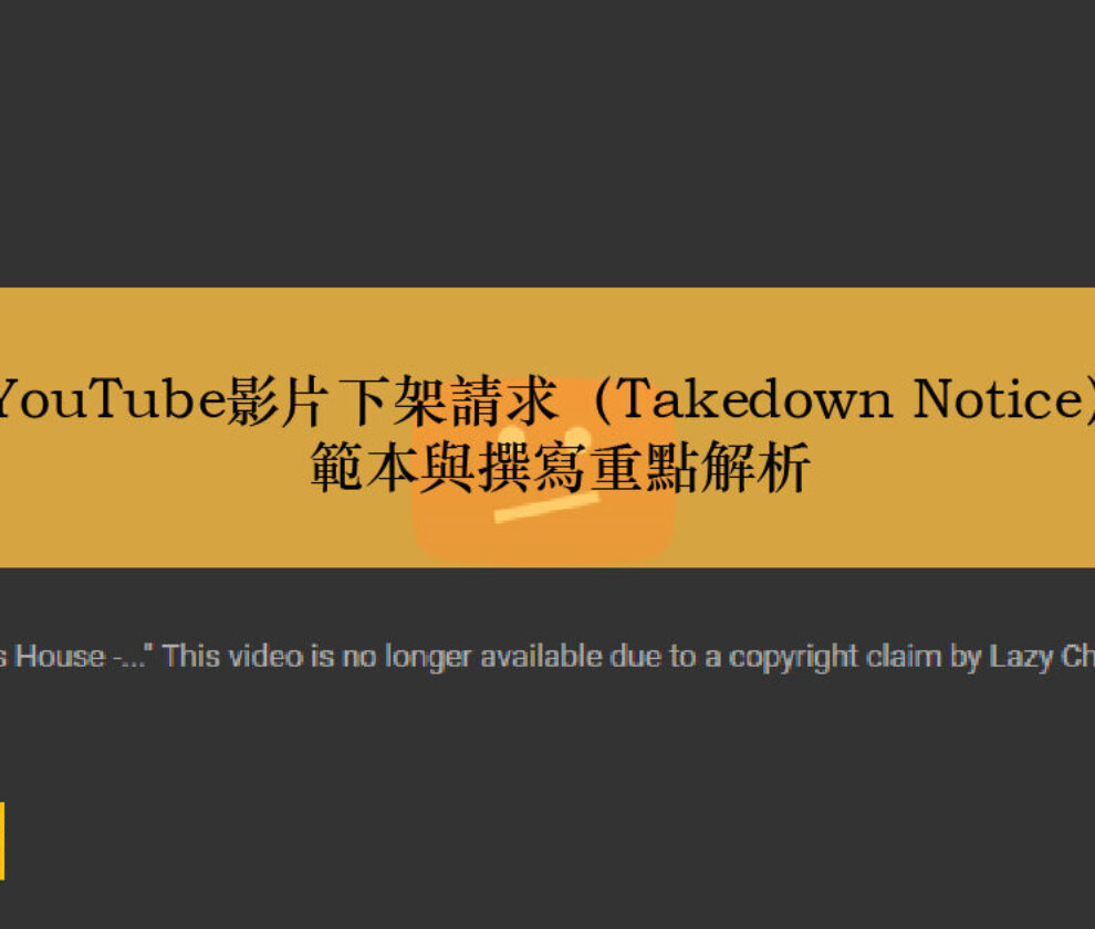 YouTube影片下架請求(Takedown Notice)範本與撰寫重點解析:版權戰役中的法律盾牌與實戰指南 前言:數位內容時代的版權保衛戰 在YouTube這個全球最大的影音平台中,每分鐘上傳的影片時長超過500小時,無數創作者、媒體公司、音樂廠牌與個人製作者在此分享他們的智慧結晶。然而,平台的開放性同時也意味著侵權行為的泛濫——未經授權的影音重製、剪輯、搬運、盜版等行為,如同附骨之蛆般侵蝕著原創者的心血。 對於許多台灣、香港及澳門的創作者而言,當發現自己的作品被盜用上傳至YouTube時,第一反應往往是憤怒與無助。有人選擇在留言區抗議,有人嘗試透過社群媒體私訊溝通,更有不少人認為「對方在國外,告不到」而選擇放棄。然而,事實上,只要掌握正確的下架請求技巧,權利人完全可以透過YouTube的官方機制,有效率地移除侵權內容,甚至在特定情況下獲得法律賠償。...