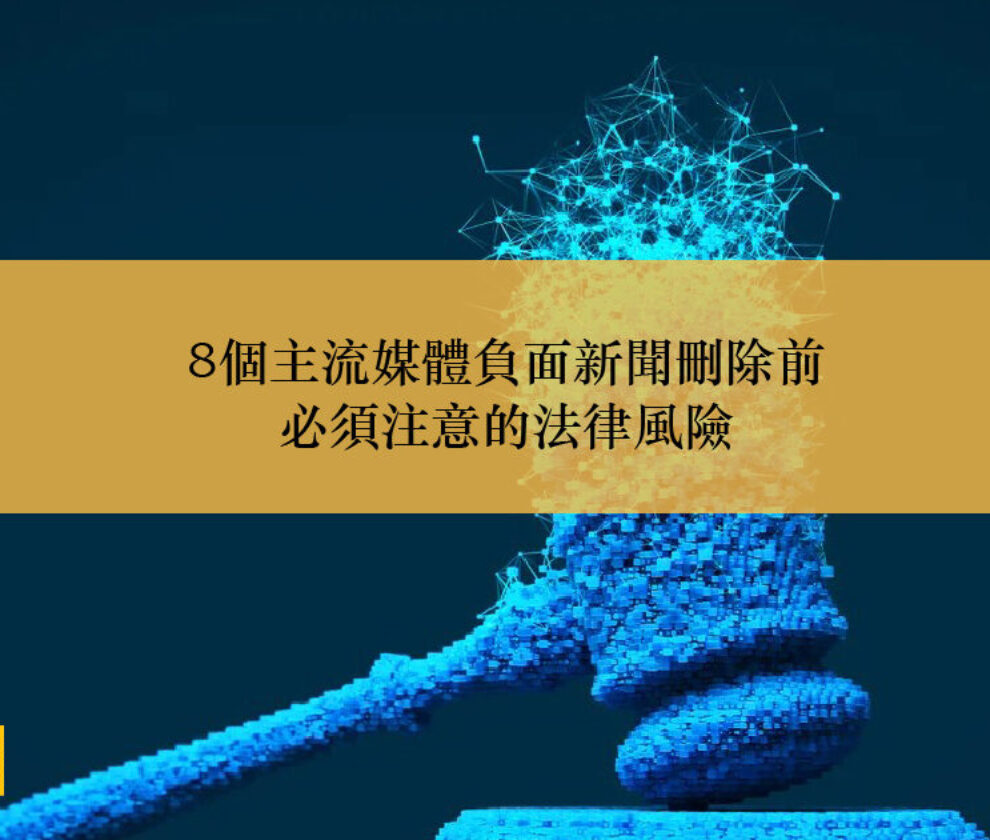 8個主流媒體負面新聞刪除前必須注意的法律風險 在數位時代,網路上的負面新聞可能對個人名譽、企業形象造成嚴重傷害。許多人第一個念頭就是「想辦法刪除」,但在採取行動之前,若未充分理解背後的法律風險,可能讓自己從受害者變成加害者,甚至面臨刑事起訴或高額民事賠償。本文將深入剖析針對8個主流媒體(包括自由時報、聯合報、中國時報、TVBS、三立新聞、東森新聞、ETtoday新聞雲、風傳媒)的負面新聞提出刪除要求前,必須審慎評估的8大法律風險,並提供完整常見問答,幫助您在維護自身權益的同時,避免誤觸法網。 前言:為什麼刪除負面新聞前需要法律評估?...